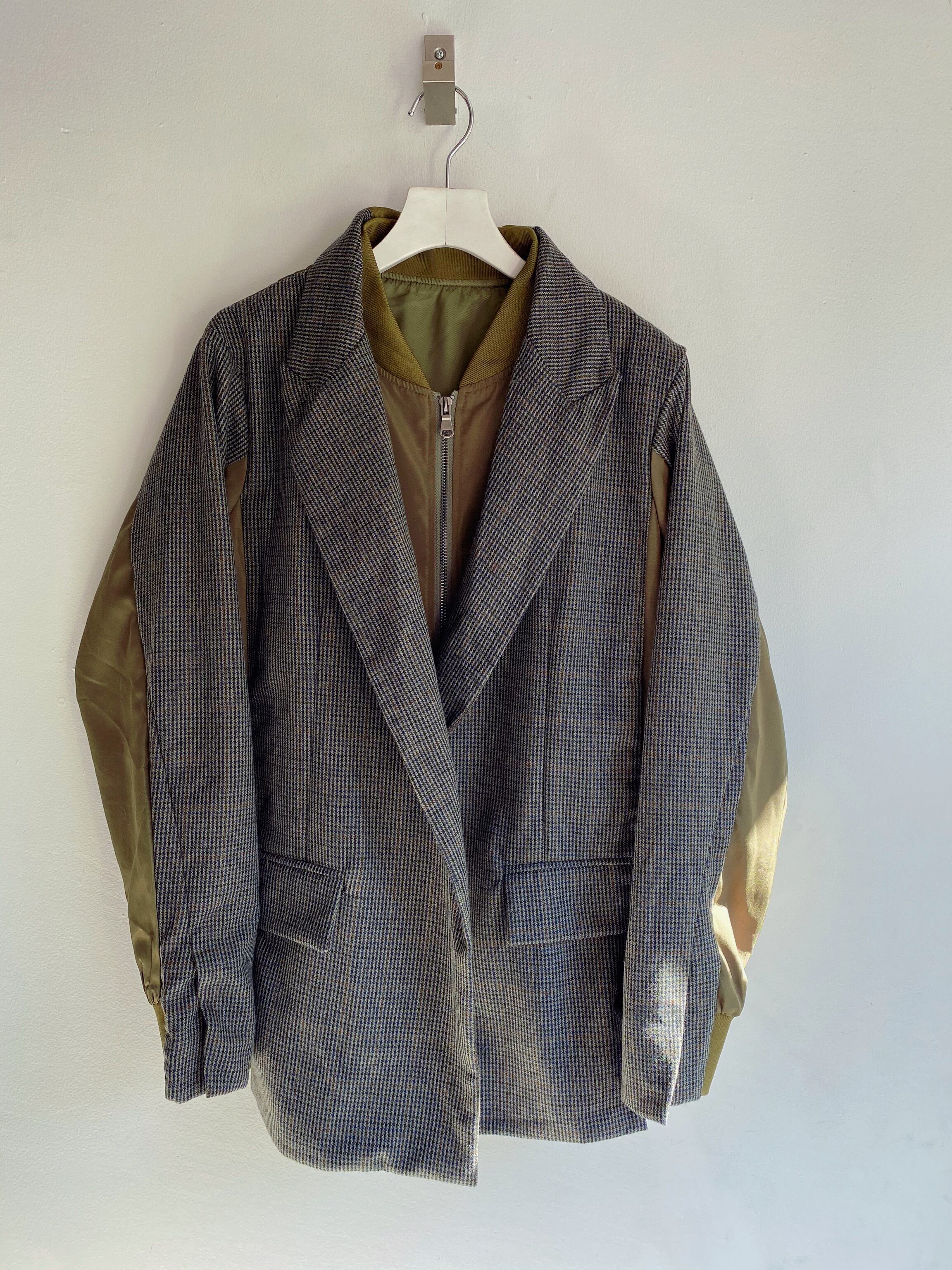 MA-1にツイードのジャケットがドッキングした、リメイクアウター。