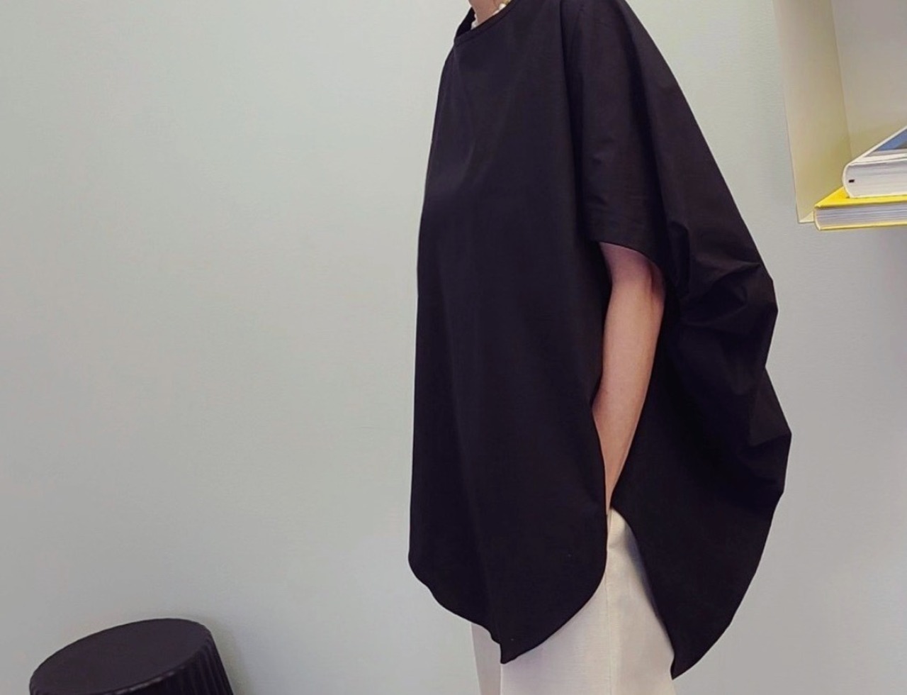コロンとしたフォルムが可愛い、チュニック丈のブラウス。